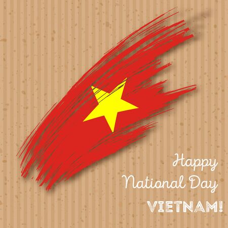 ベトナム独立記念日の愛国心が強いデザイン 暗い縞模様の背景に国民の国旗色で表現力豊かなブラシ ストローク ハッピー独立記念日ベトナム ベクトル グリーティング カード のイラスト素材 ベクタ Image